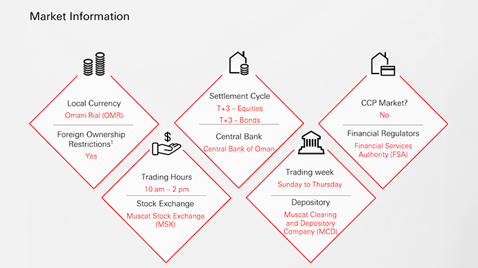 HSBC Oman has been providing DCC services to foreign clients in Oman since 1996, when the market first opened to foreign investors. HSBC is currently one of the two foreign banks providing direct custody services in Oman with a highly experienced team on the ground. HSBC Oman has significant competitive advantage over the local service providers who do not have our global presence, technology and experience.